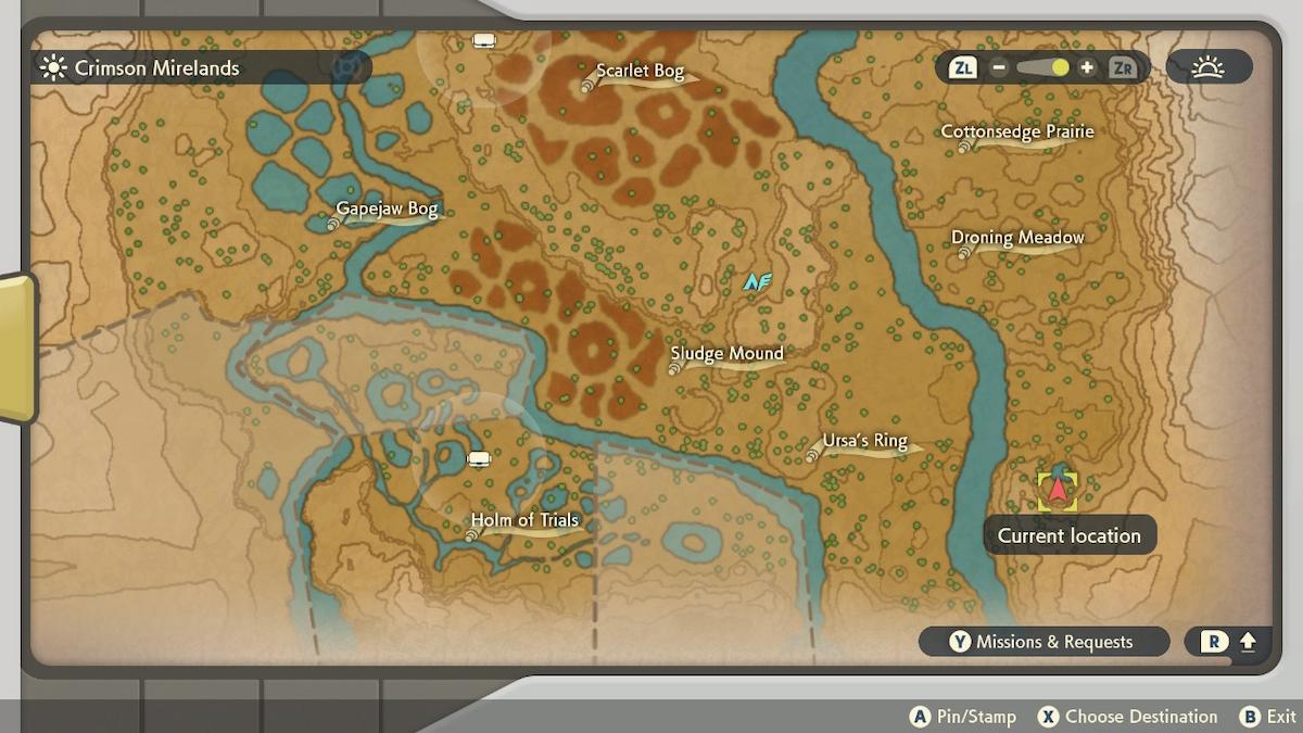 We found Turtwig in the Crimson Mirelands, south of Droning Meadow, and southeast of Ursa’s Ring. Below is a screenshot of the in-game map highlighting the area in question.