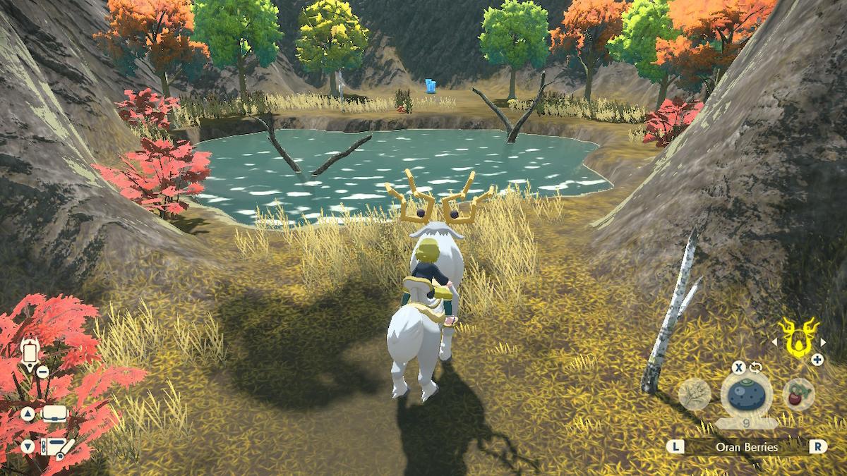 At this location, you’ll find a stretch of land decorated with trees and populated by tons of Teddiursa, Paras, and Parasect. There should be a body of water present here that has two trees sticking out of the water. On the other side of this divide is where Turtwig will spawn. You may need to wait for a bit, but eventually, the Grass-type starter will appear.