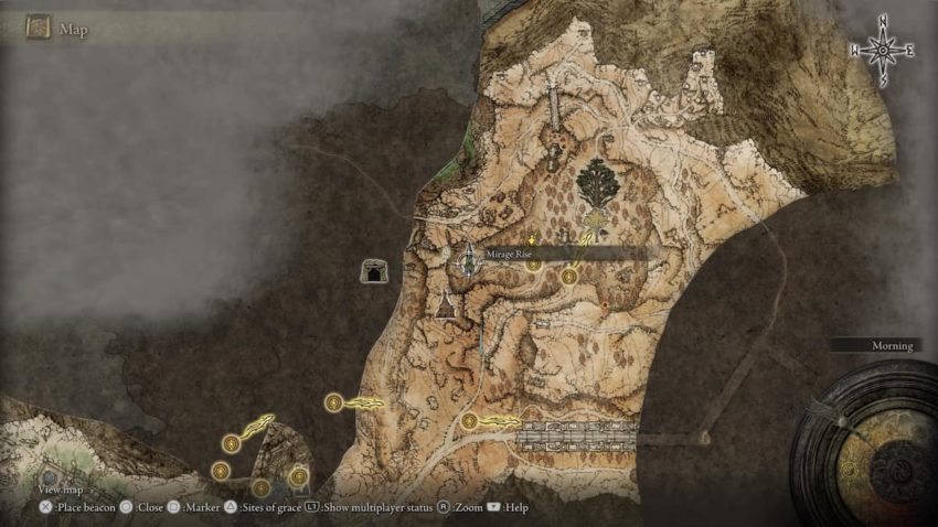 Golden Sunflower mainly spawns in areas that are close to Minor Erdtrees. However, the material is most populated within Altus Plateau, located in the northwest part of the map. Most of its Golden Sunflowers are in a valley that is directly east of Altus’s Mirage Rise location (as marked below). Its Golden Sunflowers are few and far in-between, but they are bright enough to spot from a great distance.