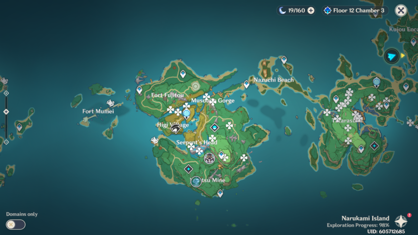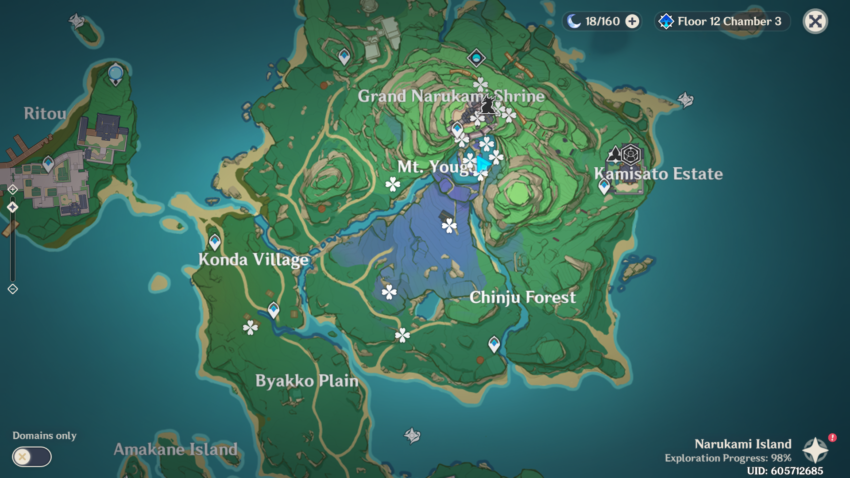 Here are the locations of the Onikabuto on Narukami Island. Note: many of the Onikabuto are located in the area directly underneath the Grand Narukami Shrine.