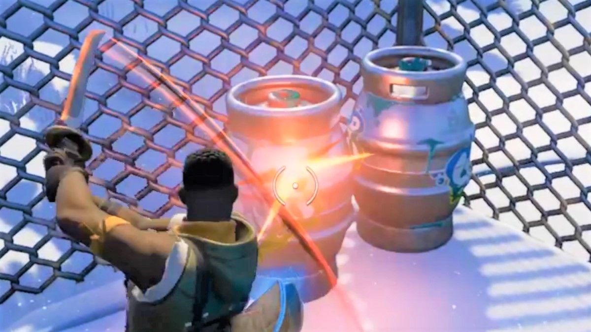 So, there are plenty of Slurp barrels out there, but each one only contains a small amount of Slurp. If you really want to restore a lot of health and shields in one go, then you’re better off breaking open a Slurp truck. There’s one of these half-buried in the snow at Frosty Fields, which is what Tilted Towers is called now that it’s frozen in snow and ice. Smash open that truck and you’re pretty much guaranteed to max out both your health and shields.