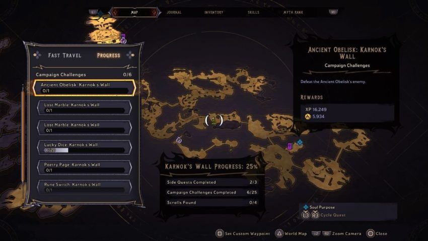 Before you can find this obelisk, you first need to reach Kornok’s Wall. This is a later game area that you won’t reach for a while. Specifically, this area is unlocked after completing the Mortal Coil quest. Once that quest is complete, you will get the Son of a Witch quest and Kornok’s Wall will become available. Travel to Kornok’s Wall and follow the main path. During this time, you will want to be doing the Son of a Witch quest to gain access to some of the mechanics in the area. Specifically, you will need to shoot rocks with crystals on them to create new pathways.