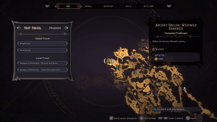 Before you can find this Ancient Obelisk, you will need to reach the Weepwild Dankness. Luckily, it won’t take you very long to reach this area because it comes shortly after the tutorial. Once you have saved Brighthoof, you will have access to the Overworld and plenty of new areas. While you might be tempted to do some sidequests, you can follow the main campaign to find Mr. Torgue in the Weepwild Dankness.