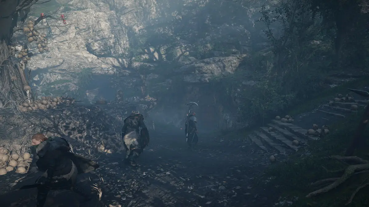 You want to make your directly through the village and look for a large red door that requires you and a partner to open up. Once an NPC Viking approaches to assist you, it opens up a pathway underneath the settlement. Follow the path, and you’ll be led to the book of knowledge.