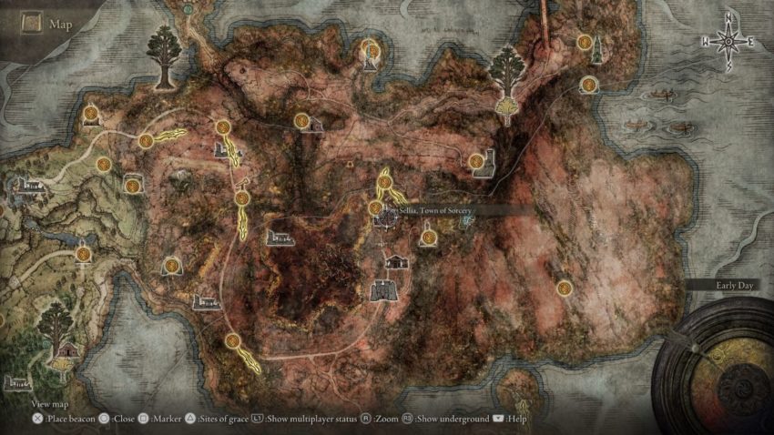 To find this headpiece, you will need to make your way to the Caelid region. In the center of the region is the town called Sellia, Town of Sorcery. You can make your way here quickly by going to the Dragon-Burnt Ruins in Limgrave and using the teleportation chest. If not, you can still reach this location rather quickly by going to the center of Caelid.
