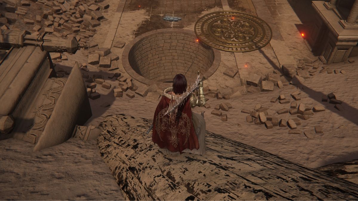 Once you reach the Ashen Capital, activate the Capital of Ash Site of Grace nearby before continuing on. Afterward, go down the hill from the Site of Grace to find an open manhole cover. You might recognize this from when you traveled through the Capital City earlier in the campaign. Drop into the open hole. Make sure to check the hole first and land on the wooden beam below it. You do not want to miss the beam. On the beam, you will find a corpse that has the talisman on it.