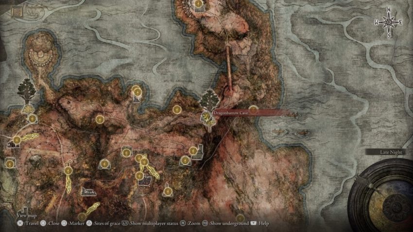 Once you reach the Erdtree, go down the hill to the west that has a bunch of guardians on it. At the bottom of the hill will be a Site of Grace. Turn around and take the path next to the hill to find the Dragonbarrow Cave. Traverse the cave and defeat the boss to obtain the talisman. The boss in this area is a Beastman of Farum Azula. If you completed the Groveside Cave in Limgrave, you will have already fought one of these foes. They are relatively easy to defeat, especially with the help of spirit summons.