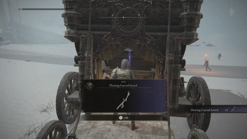 With both pieces of the medallion on hand, take the Grand Lift of Rold down to the Consecrated Snowfield. Follow the path north after you leave the dungeon and you will come across a caravan. Defeat one of the ogres pulling the caravan to make it stop and open the chest in the back to retrieve the weapon.