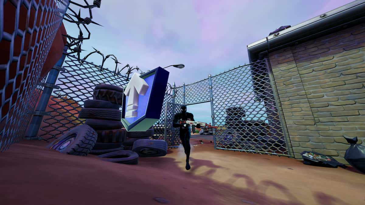 Like other Week 3 tokens, you won’t find this Level Up Token directly inside of Chonker’s Speedway. Rather, you can begin by heading to the northern end of the named location where there is a small shed and a collection of tires circling it. You’ll want to go around the right side of the shed and break into the gated area behind it. Here, the token will be found floating in between two sets of tires.
