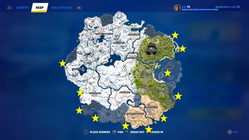 The “secret” loot boat, otherwise known as the Pawntoon, spawns somewhere a short distance from the coast of the Fortnite Chapter 3 Season 1 map. Some players believe its location is completely random, but we doubt this is the case. More likely its spot is randomly selected from a finite number of possible locations. On the map below, you can see all of the locations for the loot boat that players have reported so far, some of which have been reported more than once. We found our loot boat at the northernmost of these spots, northeast of the Daily Bugle.