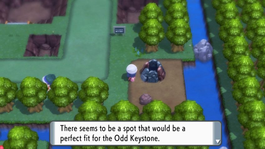 The Odd Keystone can be found by following Route 208, just before you head into Hearthome City. It is also east of Mount Coronet. Once you’ve reached a patch of grass to the left of the Route 208 sign, you’ll see a martial artist on the bottom right of the screen. He is hidden under some pesky trees. Go talk to him, and he will give you the Odd Keystone.
