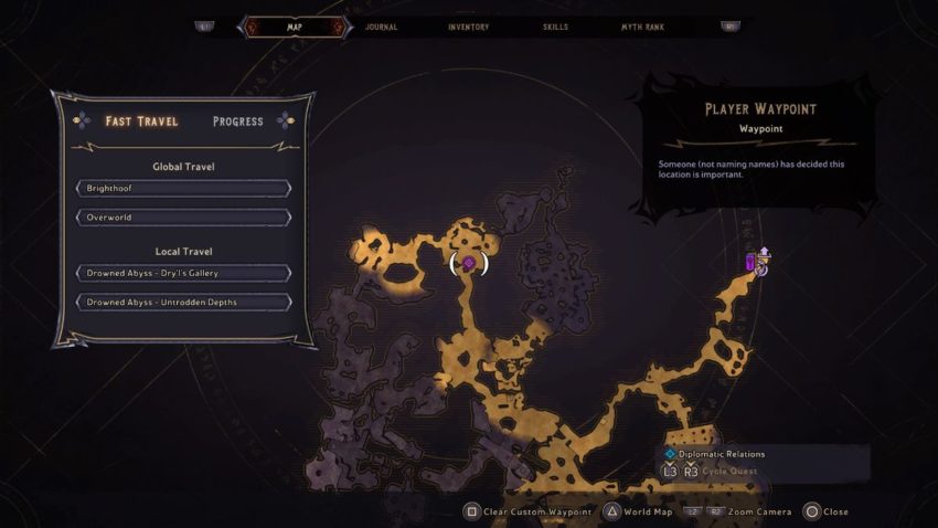 To find this Easter egg, you will first need to progress far enough into the game to reach the Drowned Abyss. This area comes after you complete the Wargtooth Shallows and have obtained the ability to see invisible bridges. In the Drowned Abyss, you will find a quest called Diplomatic Relations. This quest can be found while completing the main quest in the area and is located off to the side of the map.