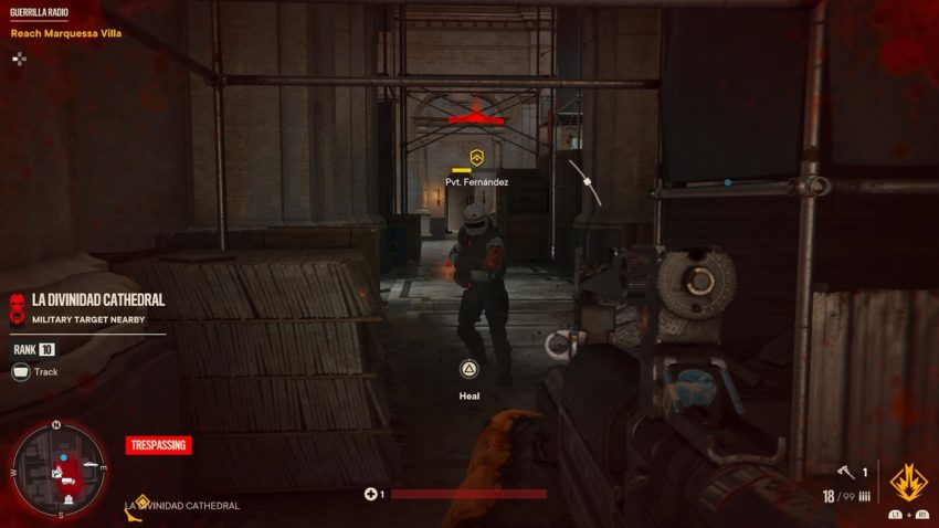 When you first enter the cathedral, use your phone to tag surrounding enemies. You’ll want to find the leader in the area to grab their keys. They’re outlined in yellow. After three attempts at getting the Zona-51 assault rifle in Far Cry 6, we discovered that the leader is surveying the ground floor.
