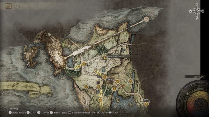 You can find Knight Bernahl by following the road that you take when going through the Stormgate. From the Church of Elleh, travel east to the Gatefront Ruins. Take the road that leads through Stormgate to the northwest until you reach the Stormhill Shack. When you reach the shack, head east until you reach the Warmaster’s Shack. This is where you will find Bernahl. When you interact with him, make sure to accept his weapon arts.