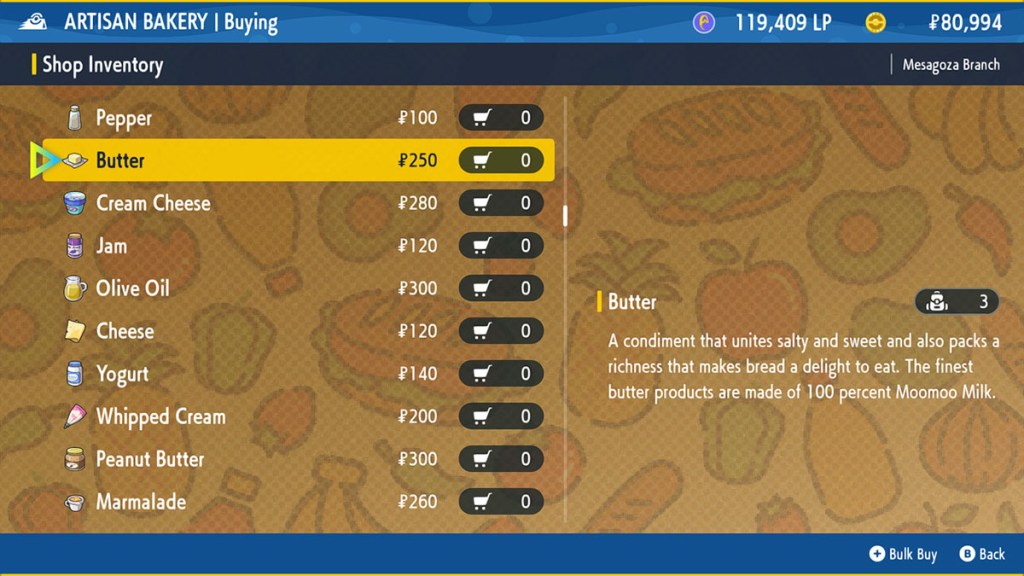 Players can get their hands on some Butter in Pokémon Scarlet and Violet by going either to an Aquiesta Supermarket or an Artisan Bakery. Since both are shown clearly on the map if you zoom in enough with a sign that looks like groceries, it shouldn’t be too hard to find one near you.