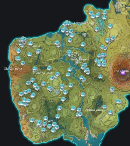 The main method of gathering Crystalline Cyst Dust is by farming Level 60+ fungi enemies scattered throughout Sumeru. Sooner or later you’ll find some fungi to beat, but to make it easier, you can look in these areas in particular: