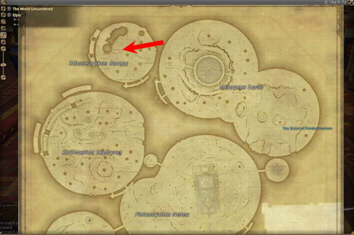 After you’ve unlocked the Tome, you’ll now be able to go out on the hunt for Rhodium Sand. You can notably find it at specific nodes at certain times. You check these times over here on the Final Fantasy XIV Clock website to see how long the timer will be until it reappears. When it does, head on over to Elpis at coordinates (X:13.6, Y:7.2). You will need to have a character with a Quarrying Skill of 90 to harvest for it.
