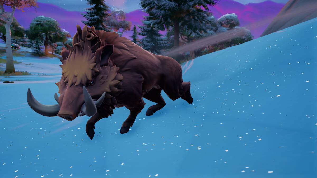 Of all of the animals to hunt in Fortnite Chapter 3 Season 1, the large red boars that are typically found in the snowy sections of the map are the easiest to eliminate. However, unlike the wolves, this animal does not travel in packs, and only a few are found far and in-between.
