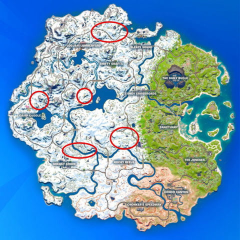 Speaking of drops, after taking a boar out, the animal will leave behind two pieces of meat and two mushrooms. The meat can be used to increase your HP, as each mushroom lends 5 additional shield points. Here’s where boars are most populated in Fortnite Chapter 3 Season 1.
