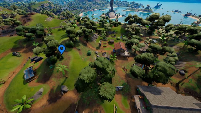 The first step in this two-part mission is to head to any IO-controlled location and defeat one of the faction’s soldiers. At the time of writing, these enemies can currently be found at Tilted Towers, The Fortress, Greasy Grove, and Command Cavern. However, we recommend going to the current battle location, as there are dozens to fight in the area. You can find these unique battles by heading to the red “X” that is marked on the in-game map.