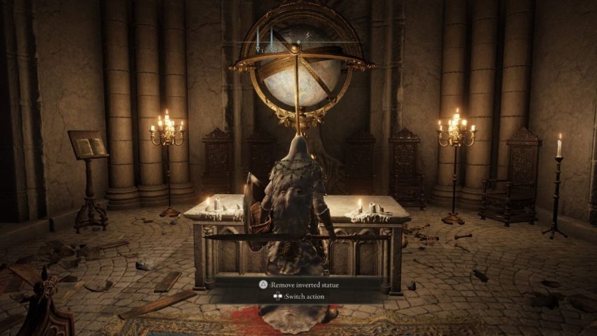 When you reach the study hall, head inside and interact with the pedestal in front of the globe inside. Doing so will cause the entire tower to flip upside down. While everything will look fine in the room with the pedestal, once you go up the stairs, you will see that everything is upside down. You can now access the rest of the tower.
