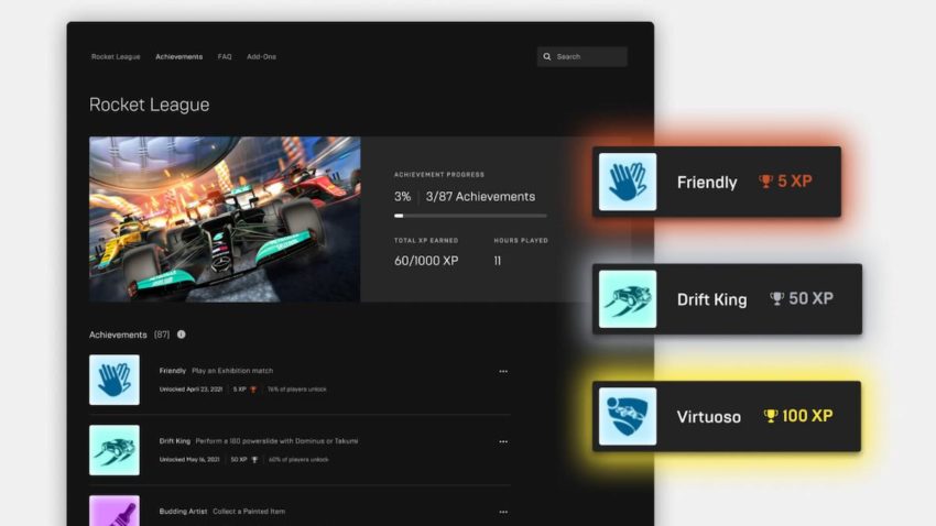 Epic Games announced through a blog post this morning that achievements will debut in select titles on the Epic Games Store sometime next week. Epic did not provide a full list of games that will support achievements, but it did highlight some key titles, including Rocket League, Hades, Kena: Bridge of Spirits, and the upcoming Alan Wake Remastered.