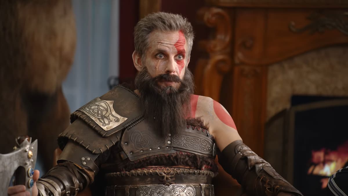 All Parents Can Relate runs for about three minutes, and it riffs on the idea of the parent-child dynamic between Kratos and Atreus — a relationship that changes over the course of God of War’s Norse saga. The video features comedian Ben Stiller in full Kratos makeup and costume, NBA superstar LeBron James, and actor John Travolta, who looks an awful lot like Kratos in his own right thanks to a beard and shaved head. Joining them are their respective children Quin, Bronny, and Ella. This isn’t the first time we’ve seen LeBron James tied to a video game, of course. He got his own Fortnite skin in summer 2021 before becoming part of the MultiVersus roster this year.