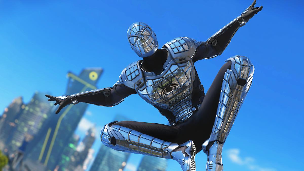 The suits highlighted paid homage to multiple eras of Spider-Man. The default suit is partially based on John Romita Sr.’s iconic design incorporating thick bezels around the mask’s eyes; the classic suit is heavily modeled after Steve Ditko’s original design of the character; the Secret War suit takes inspiration from the Marvel limited series of the same name; the Spider-Armor Mark I and Mark III suits are based on Peter Parker’s outfits in Web of Spider-Man #100 and the Ends of the Earth storyline, respectively; finally, the iconic Noir costume from Spider-Man: Noir is also here, which was previously featured in Spider-Man: Into the Spiderverse.