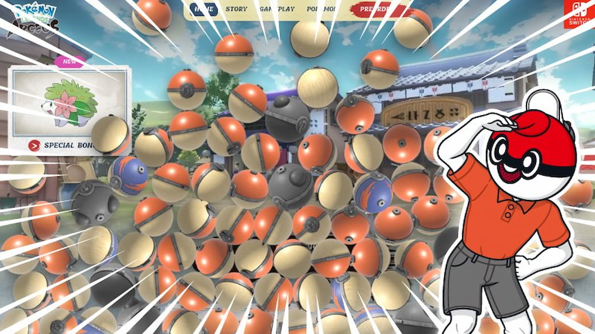 When you click the link provided by the Pokémon twitter page, you’ll head on over to the Pokémon Legends: Arceus page and your screen will be covered in Poké Balls. Your goal is to collect them all to discover a surprise, but if you click the wrong one, the Poké Ball explodes, starting your progress over.