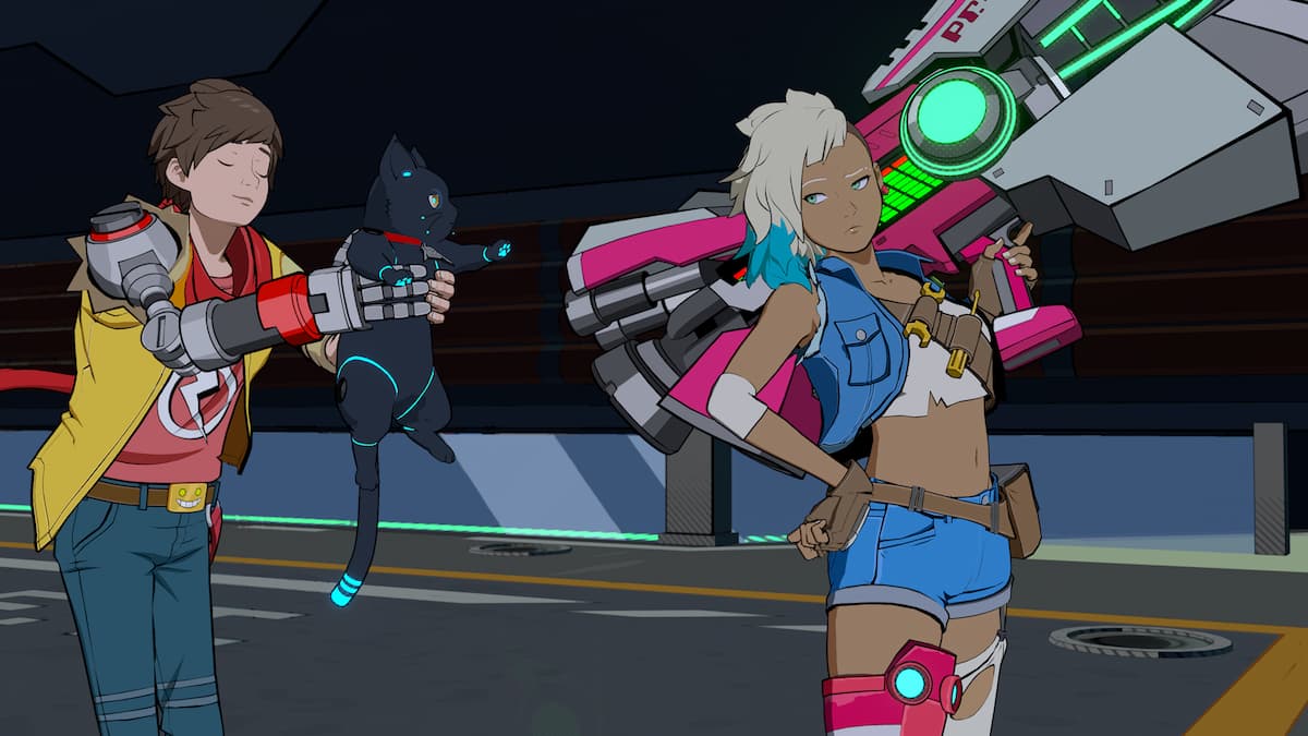 Hi-Fi Rush is filled with characters as colorful as their environment. Protagonist Chai is a loveable idiot who does things without thinking and teams up with a group looking to put a stop to the corrupt heads of the Vandelay company, who are attempting to take over the minds of their consumers. Peppermint is the brains of the operation, coming up with plans for attack and adding a bit of an emotional twist you see from nearly the beginning of the game. Macaron is a tepid former Head of Research and Development who has created a psych evaluation robot named CNMN (pronounced “cinnamon”) that is a little too honest with its findings and draws emotions on its face with a marker.